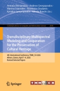 Further to the achievements of the previous TMM_CH Conferences, the latest developments in research and innovation that identify novel trends to build an interdisciplinary approach to conservation and holistic digital documentation of cultural heritage is attempted at the 4th TMM_CH. The utilization and reuse of monuments, historic cities and sites, forms the framework of a sustainable preservation of cultural heritage, in accordance with the principles of circular economy; in terms of respect and protection of values, materials, structures, architecture and landscape; with an informed society, able to participate effectively in the policies that will design and implement the new strategies required.